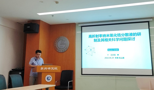 汪文龍研究員介紹了高折射率納米氧化鋯分散液的用途,其主要應用在手機、電腦、電視等液晶顯示器的背光模組中,以增強其發(fā)光亮度和提高清晰度。系統(tǒng)介紹闡述了高折射率納米氧化鋯分散液的研究進展,分享了其課題組在該領(lǐng)域課題的提出、材料的設計以、與企業(yè)的合作開發(fā)交流,以及課題進展中遇到的問題和瓶頸。