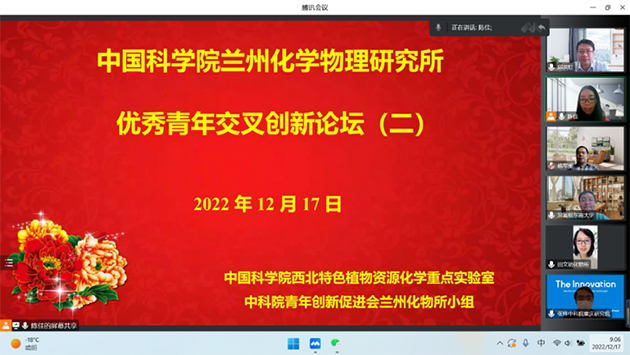 12月17日,中國科學(xué)院蘭州化學(xué)物理研究所中科院西北特色植物資源化學(xué)重點(diǎn)實(shí)驗(yàn)室聯(lián)合中科院青年創(chuàng)新促進(jìn)會(huì)蘭州化物所小組舉辦了優(yōu)秀青年交叉創(chuàng)新論壇(二)。本次論壇通過騰訊會(huì)議召開,相關(guān)領(lǐng)域科研人員和研究生參加了論壇。