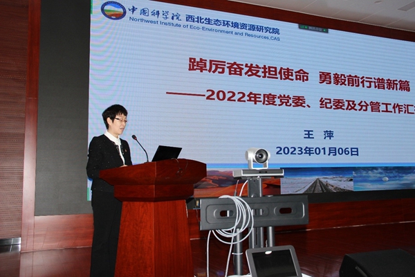 1月6日下午,中國(guó)科學(xué)院西北生態(tài)環(huán)境資源研究院(簡(jiǎn)稱西北研究院)召開2023年度工作會(huì)議暨領(lǐng)導(dǎo)班子考評(píng)會(huì)。蘭州分院分黨組成員、副院長(zhǎng)趙培慶,蘭州分院組織人事教育處處長(zhǎng)楊含斌,蘭州分院組織人事教育處工作人員等組成考評(píng)小組對(duì)西北研究院領(lǐng)導(dǎo)班子和領(lǐng)導(dǎo)人員進(jìn)行現(xiàn)場(chǎng)考評(píng)。會(huì)議由西北研究院黨委副書記、紀(jì)委書記王萍主持。