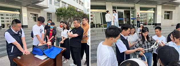 培訓結(jié)束后,在戶外開展了突發(fā)事件演練。教官逐一演示了心肺復蘇、海姆立克急救法和逃生自救繩索打結(jié),介紹了每個步驟的操作要點,參會人員親身操作體驗,提升了應(yīng)急自救、互救技能。