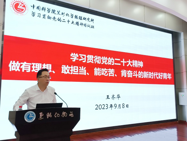 蘭州化物所黨委書記王齊華作了題為“學(xué)習(xí)貫徹黨的二十大精神 做有理想敢擔(dān)當(dāng)能吃苦肯奮斗的新時代好青年”的專題黨課,并對全體研究生同學(xué)提出希望和要求。希望同學(xué)們以習(xí)近平新時代中國特色社會主義思想為指導(dǎo),認(rèn)真學(xué)習(xí)領(lǐng)會黨的二十大精神、習(xí)近平總書記關(guān)于科技創(chuàng)新的重要論述和指示批示精神。面向世界科技前沿、面向國家重大需求、面向國民經(jīng)濟(jì)主戰(zhàn)場、面向人民生命健康,刻苦鉆研,勇于創(chuàng)新,大力傳承弘揚科學(xué)家精神,培養(yǎng)高尚的品格、積淀豐厚的學(xué)養(yǎng)、保持良好的心理狀態(tài),努力成長為對國家、對民族有用的創(chuàng)新人才,把個人的理想追求融入黨和國家事業(yè)之中,為早日實現(xiàn)高水平科技自立自強(qiáng)貢獻(xiàn)青春力量和智慧。