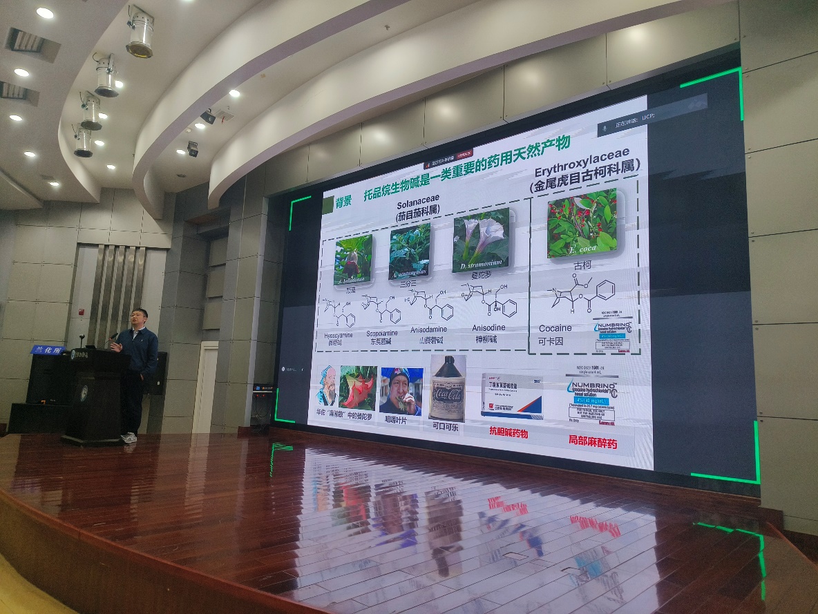 黃勝雄作了題為“植物天然藥物的生物合成及資源創(chuàng)新利用”的報告,介紹了其課題組在植物托品烷生物堿(莨菪堿和可卡因)和黃芪三萜的生物合成途徑解析的相關(guān)研究。講解了如何將基礎(chǔ)研究的成果利用合成生物學(xué)進(jìn)行植物藥產(chǎn)業(yè)的升級和創(chuàng)新。