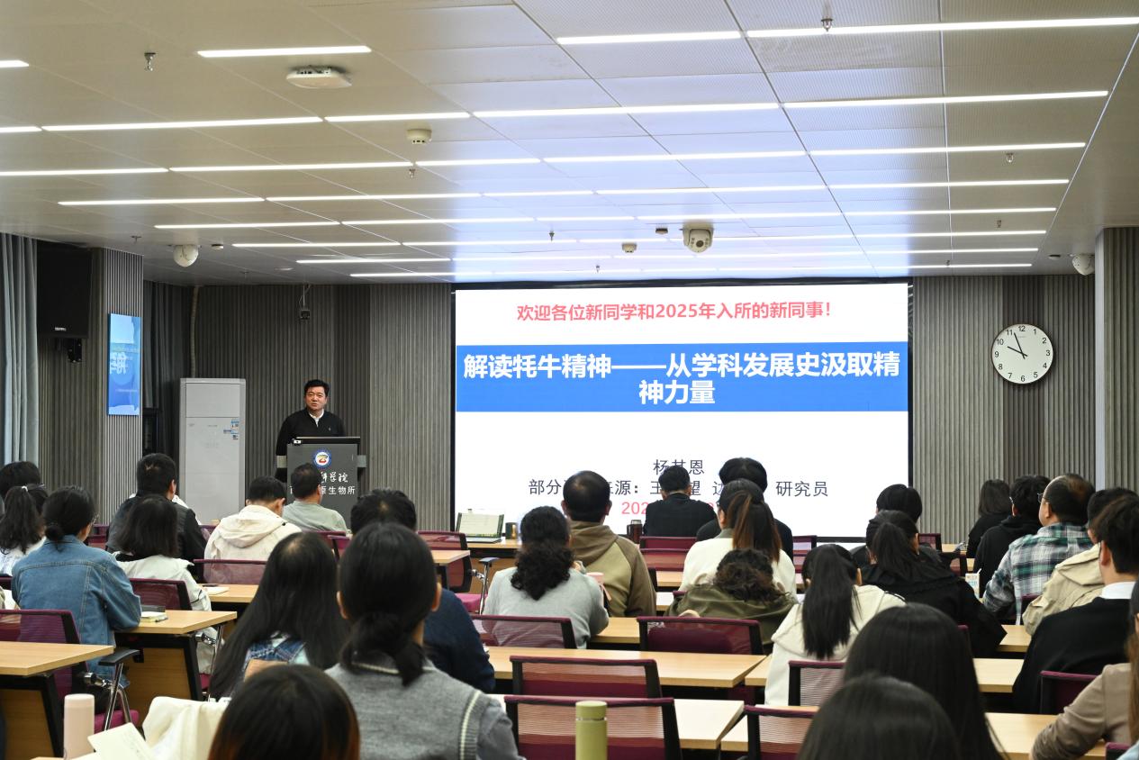8日上午,入學(xué)典禮在莊嚴(yán)的國(guó)歌聲中拉開序幕。陳世龍首先作了“弘揚(yáng)科學(xué)精神,加強(qiáng)學(xué)風(fēng)建設(shè)”專題報(bào)告,強(qiáng)調(diào)了在科研的道路上,傳承好科學(xué)精神,遵循唯真求實(shí)、嚴(yán)謹(jǐn)本分、非所屬者不取、非原創(chuàng)者謙卑的原則和系好學(xué)術(shù)人生的第一??圩拥闹匾?。隨后,楊其恩作了“解讀牦牛精神——從學(xué)科發(fā)展史汲取精神力量”專題報(bào)告,向大家講述了“牦牛精神”蘊(yùn)含的深刻內(nèi)涵,他希望大家能夠從研究所的文化中汲取精神力量,時(shí)刻保持對(duì)科研工作的熱情和敬畏之心、求知欲和好奇心。最后,入學(xué)典禮特邀退休職工李英年研究員作了“熱愛工作 勤勞耕耘——談科學(xué)家精神”專題報(bào)告,他通過(guò)分享40多年的工作經(jīng)歷與感悟,告訴大家精神的培養(yǎng)需要關(guān)注細(xì)節(jié)、廣學(xué)博覽、在交流與思考中培養(yǎng)創(chuàng)新意識(shí),以卓然眼界、超群膽識(shí)、堅(jiān)定信念、敢天下之先。