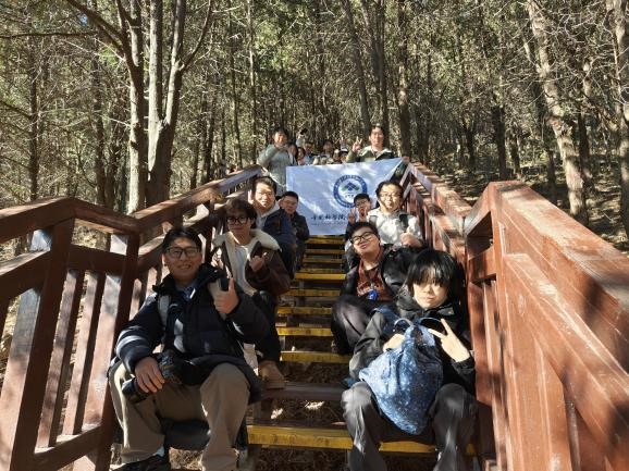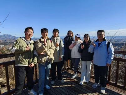 隊(duì)伍沿雁棲湖校區(qū)出發(fā),穿林越階,在陡坡與棧道交錯間競速前行。觀景臺極目遠(yuǎn)眺,京北山色盡收眼底。一路上,陡坡棧道考驗(yàn)?zāi)土?,峰頂遠(yuǎn)眺開闊胸懷,梵音鐘鼓沉淀初心。大家相互攙扶、彼此等待,用腳步丈量自然,用笑聲縮短跨學(xué)科的距離。高強(qiáng)度的徒步為新“鹽湖人”注入了堅(jiān)毅、協(xié)作、沉靜的集體底色。在這片自然與人文交融的天地間,大家紛紛暢談科研志向,分享求學(xué)初心。“登高”不僅是為了望遠(yuǎn),更是為了“明志”——在高處審視自我,在廣闊中確立方向。有同學(xué)感慨:“科研之路正如登山,不在于一蹴而就,而在于持之以恒的積累與攀登?!?/span>